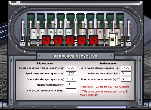 BioBLAST — Resource Recycling Simulator In balancing their bioregenerative life-support system, students must set parameters for storing and recycling liquid and solid waste in their lunar base. |