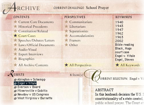 Foundations of Freedom — Archive The archive contains all the materials students need to complete a challenge. It includes over 600 primary source documents, 420 expert video clips, over 90 minutes of documentary-style video, 40 political cartoons, and 140 biographies. |