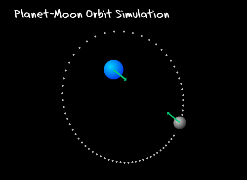 Motions and Forces — Planet-Moon Orbit Simulation The Planet-Moon Orbit Simulation allows students to change the distance between two objects and observe how gravitational forces cause their motions to change. |