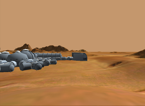 Mars City — Balloon Physics Challenge A “walk around” allows exploration of the Mars City base exterior and the surrounding terrain. |