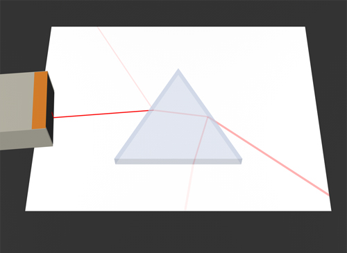 Polyhedron Physics™ — Ray Box and Triangular Prism Simulation Use a triangular prism and a ray box to investigate the refraction of a ray of light, determine the minimum angle of deviation, and demonstrate critical refraction and total internal reflection. |