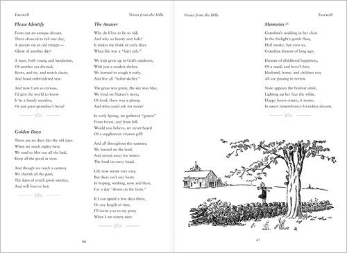 Verses from the Hills This 52 page book contains 111 original poems and 26 illustrations. No matter where you come from, you can find a part of yourself in Flora’s memories of friends, family, faith, and fun. |