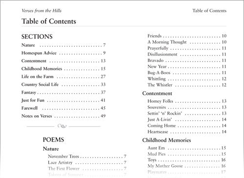 Verses from the Hills Flora’s memories of her country life reflect her appreciation and respect for nature and community. Experience was her teacher, and her homespun advice is as pertinent today as it was more than a century ago. |