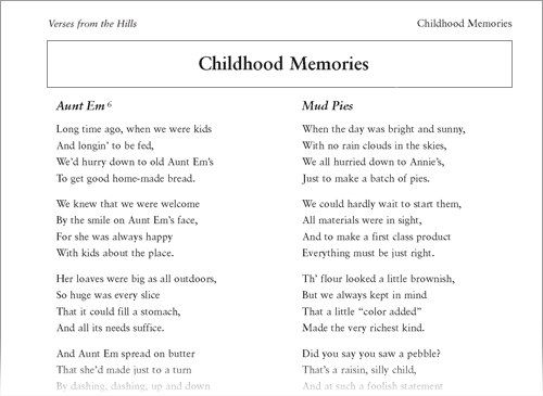 Verses from the Hills With just the right amount of imagination, a small corner of the world can become a very big place, where everyday things become extraordinary. |