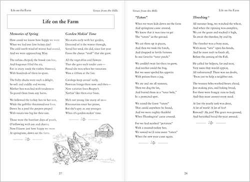 Verses from the Hills Life on the farm involves quite a lot of work, for men, women, and children alike. When Spring arrives, there is much to be done. Anticipating the rewards of hard work was enough to keep people going. |