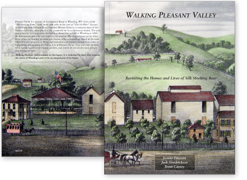 Walking Pleasant Valley — Cover, Three Mile Ice House An etching of the Three-Mile Ice House was chosen to represent an era when the Pleasant Valley section of Wheeling, WV was beginning to develop. Historic National Road passed in front. |